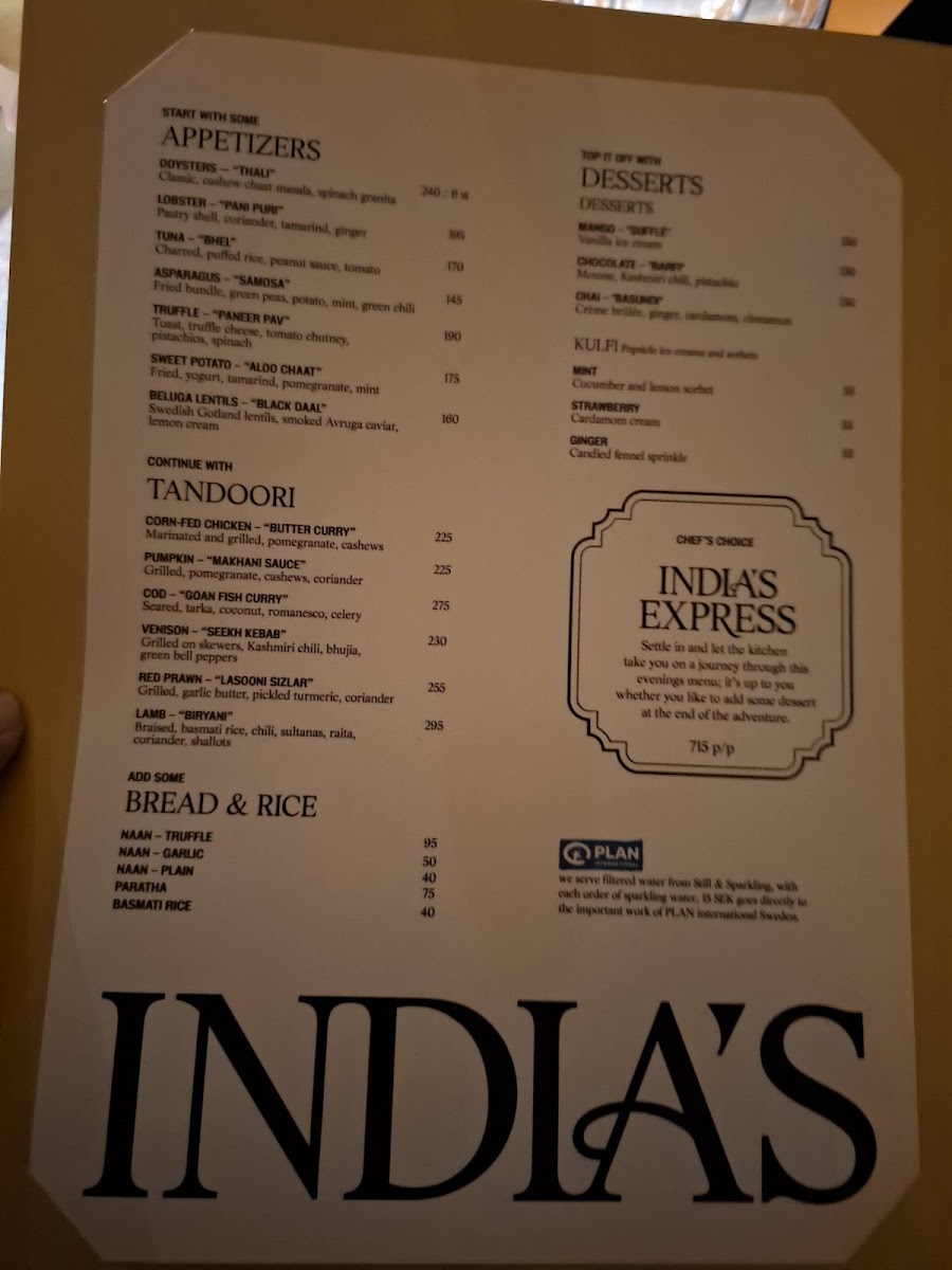 INDIA’S offers a thoughtfully curated menu where traditional Indian flavors meet contemporary European influences. The selection is focused yet varied, highlighting a range of dishes that suit both a relaxed meal and a more lively evening out. You’ll find appetizers like samosas and unique takes on classics such as pani puri alongside rich main courses including Wagyu rib eye and entrecôte.